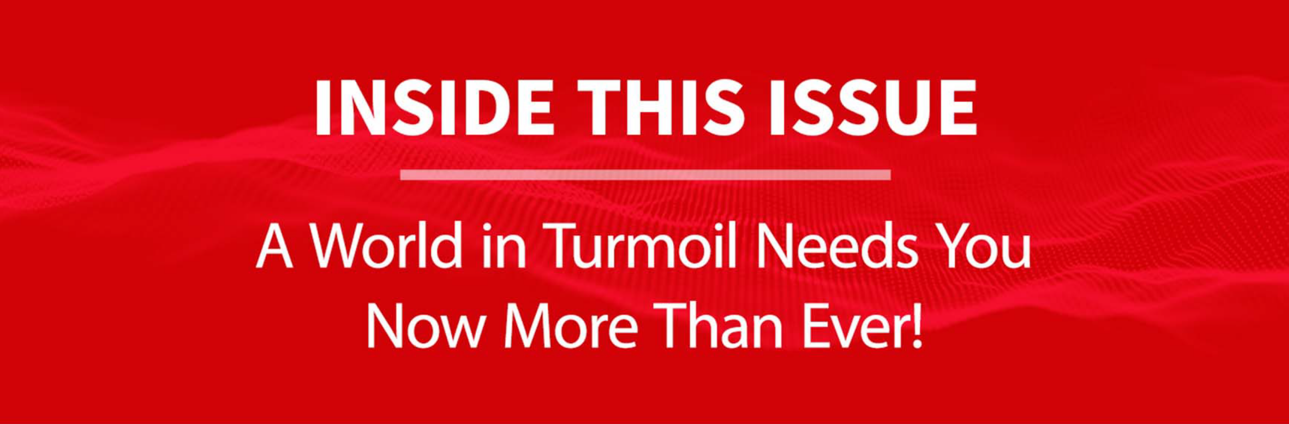 A World in Turmoil Needs You Now More Than Ever!