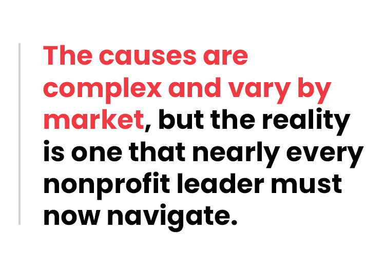 The causes are complex and vary by market, but the reality is one that nearly every nonprofit leader must now navigate.