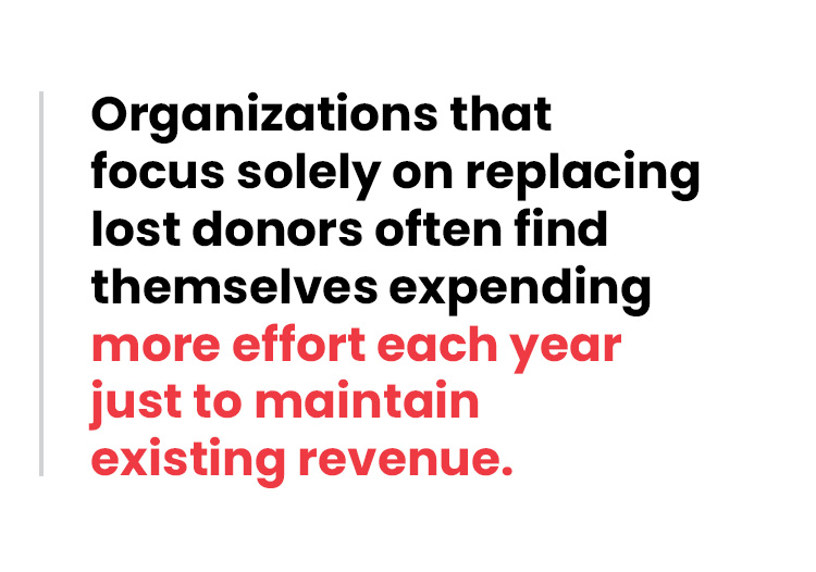 Organizations that focus solely on replacing lost donors often find themselves expending more effort each year just to maintain existing revenue. Capacity grows when donors are intentionally invited into deeper, ongoing engagement with the organization.